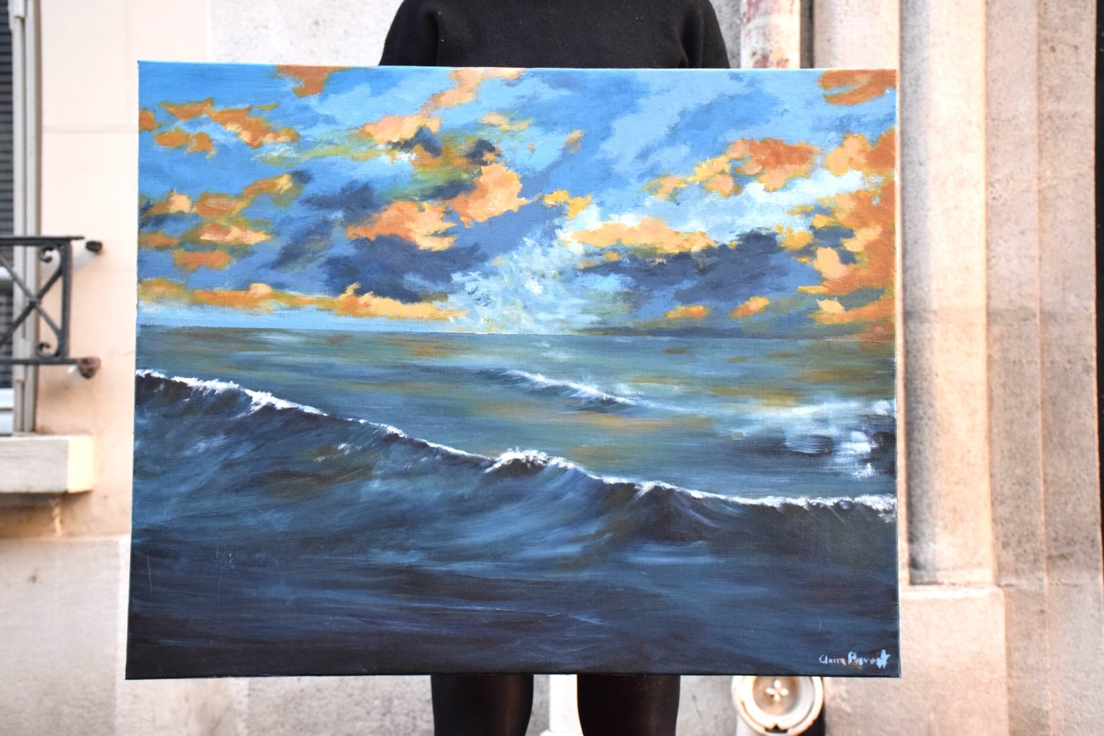 Peinture acrylique sur toile de lin représentant la puissance de l’océan. Œuvre issue de la collection FIRST.