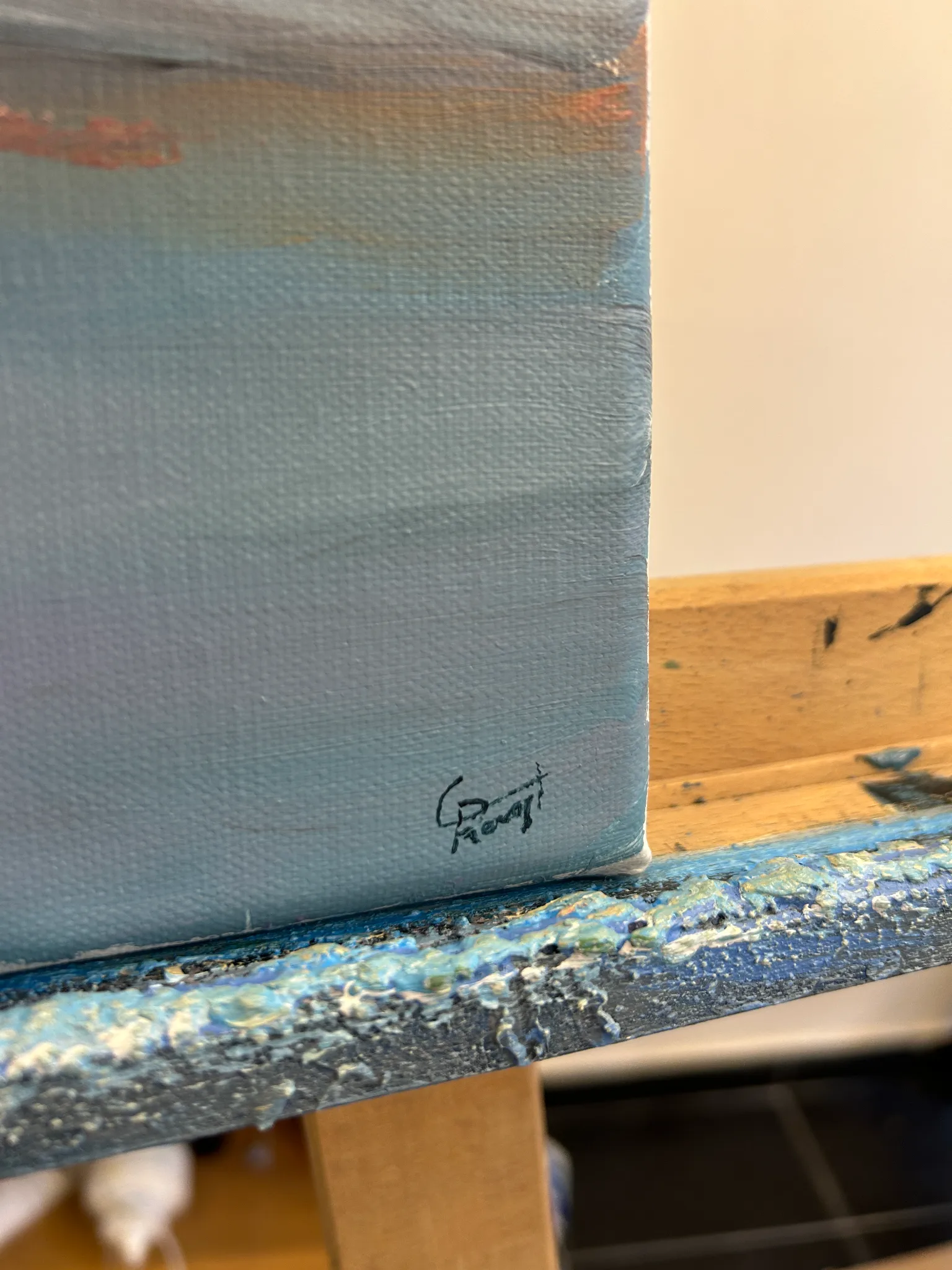 La collection « Éclaircie » arrive après la tempête. Certaines œuvres illustrent l’apaisement, le retour au calme. D’autres expriment l’état totalement opposé à la tempête : une immersion dans le bonheur et les émotions joyeuses. Cet état se manifeste à travers des toiles aux couleurs vives, réalisées sans pinceaux, directement aux doigts, pour transmettre les émotions du corps vers la toile.